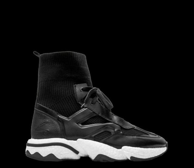 Men’s Black Leather Sneaker Boot is a stylish luxury designer sneaker with a perfect blend of leather and woven fabric.
