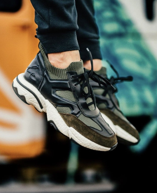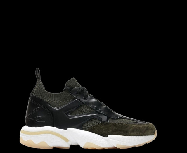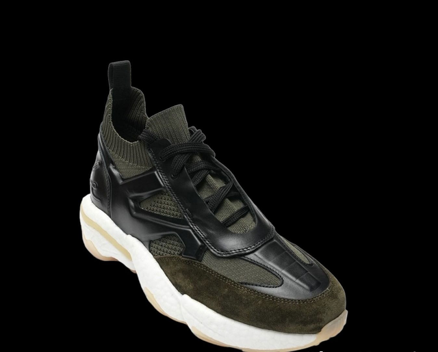 Men’s Green Leather and Fabric Sneaker is a stylish luxury designer sneaker with a perfect blend of leather and woven fabric.