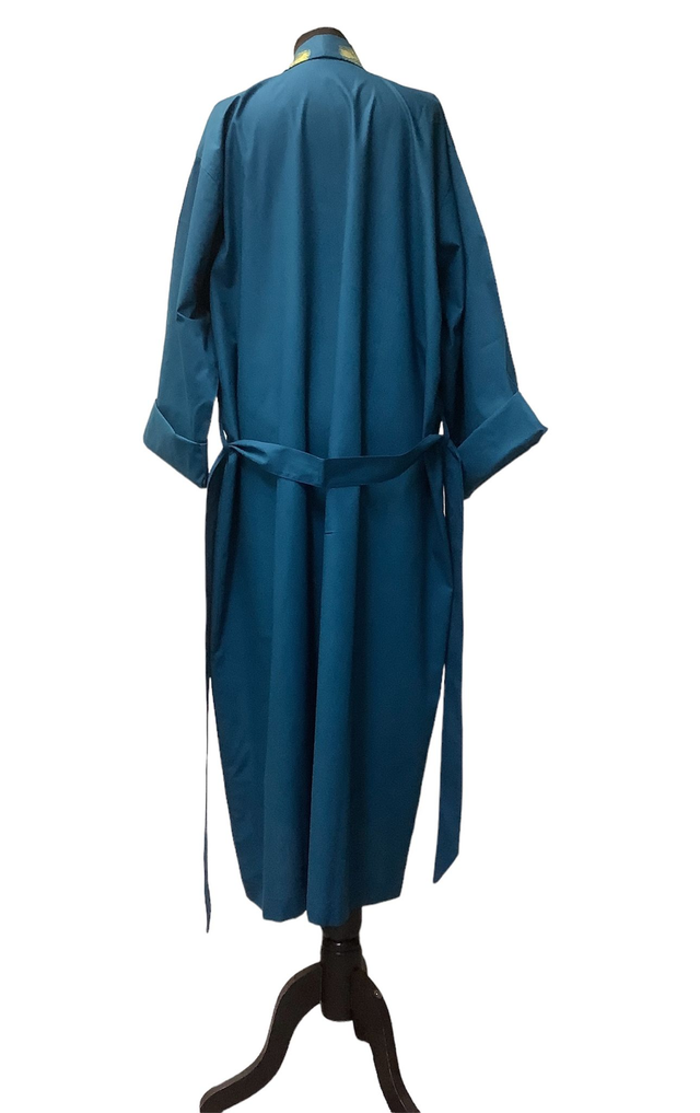 Indulge in luxurious comfort and style with our Teal Cotton Peacock Feathers airy long generously cut oversized gown with patch pockets and wide sleeves that can be folded to preferred length.