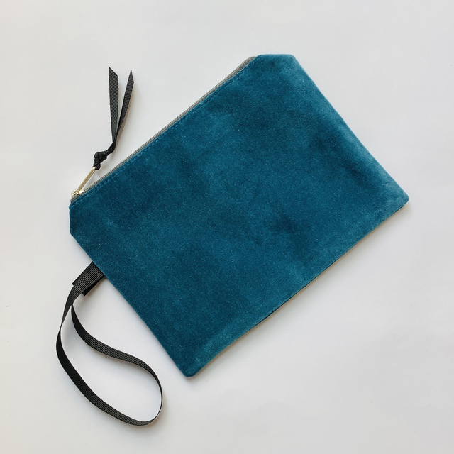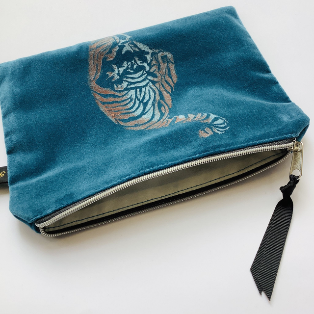 Introducing our exquisite Teal Tiger velvet zip-up pouch.