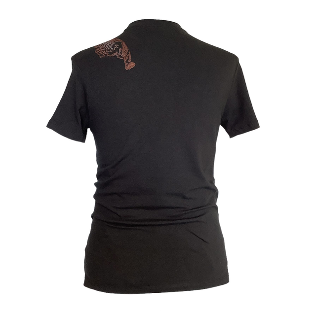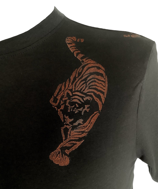 Black round neck slim fit T-shirt with short sleeves featuring Tiger handprinted graphic art print